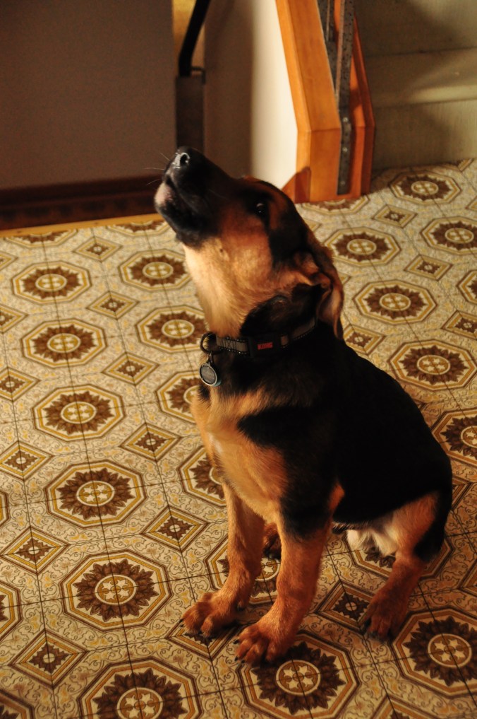 This is Roman on Day 2 of Back to School. He is sitting in the kitchen – howling. This is after he watched the boys walked down the driveway and spent five minutes doing this….