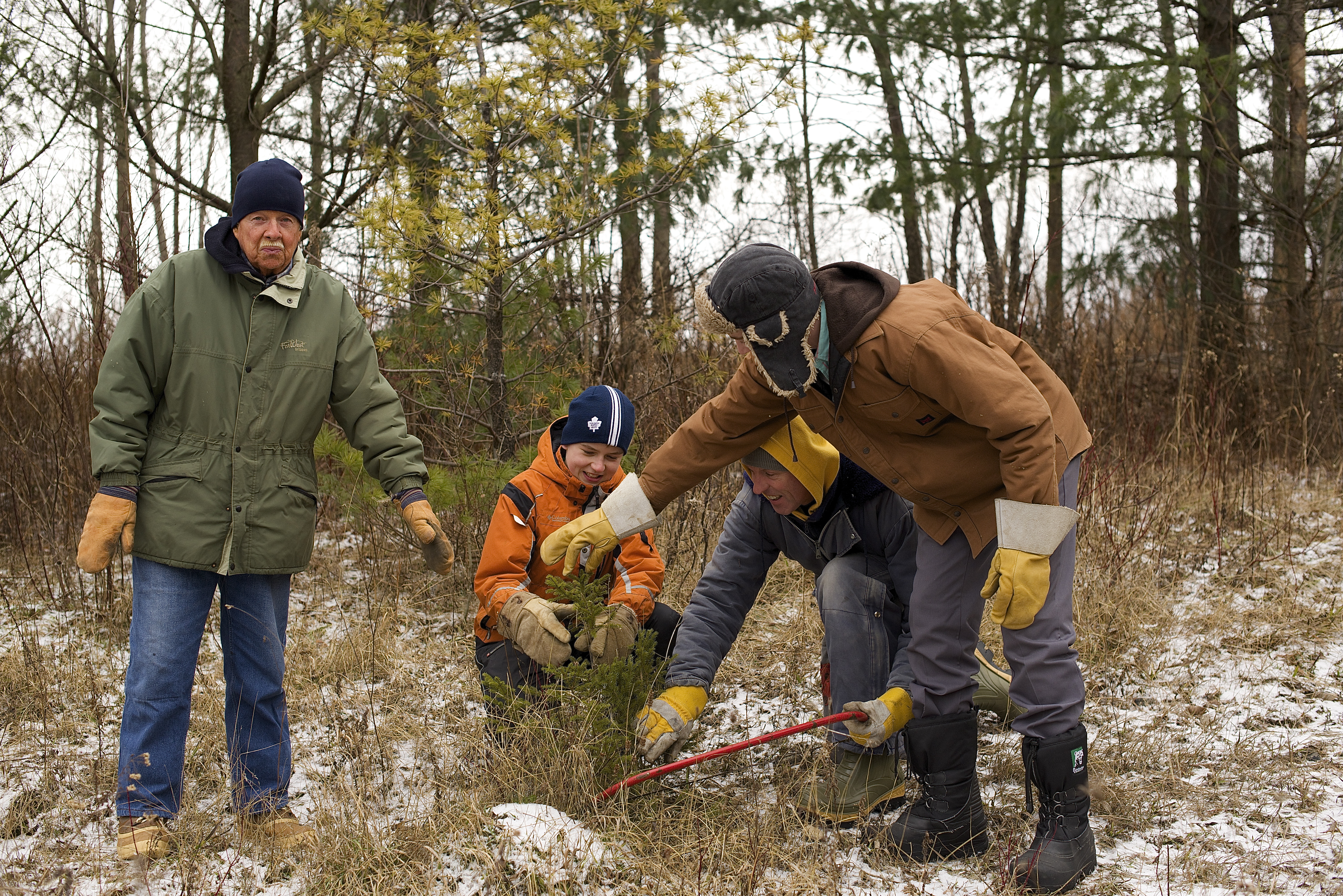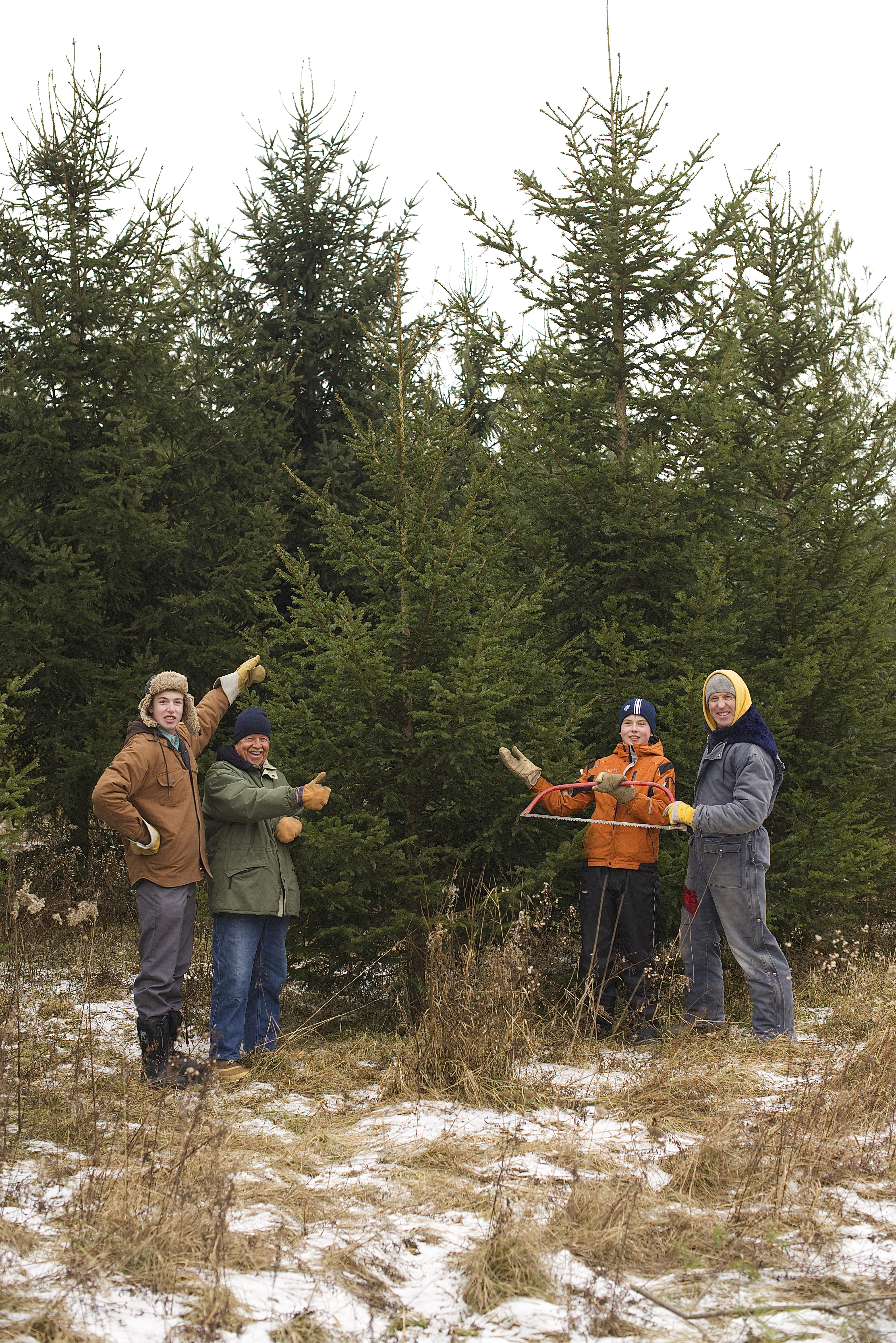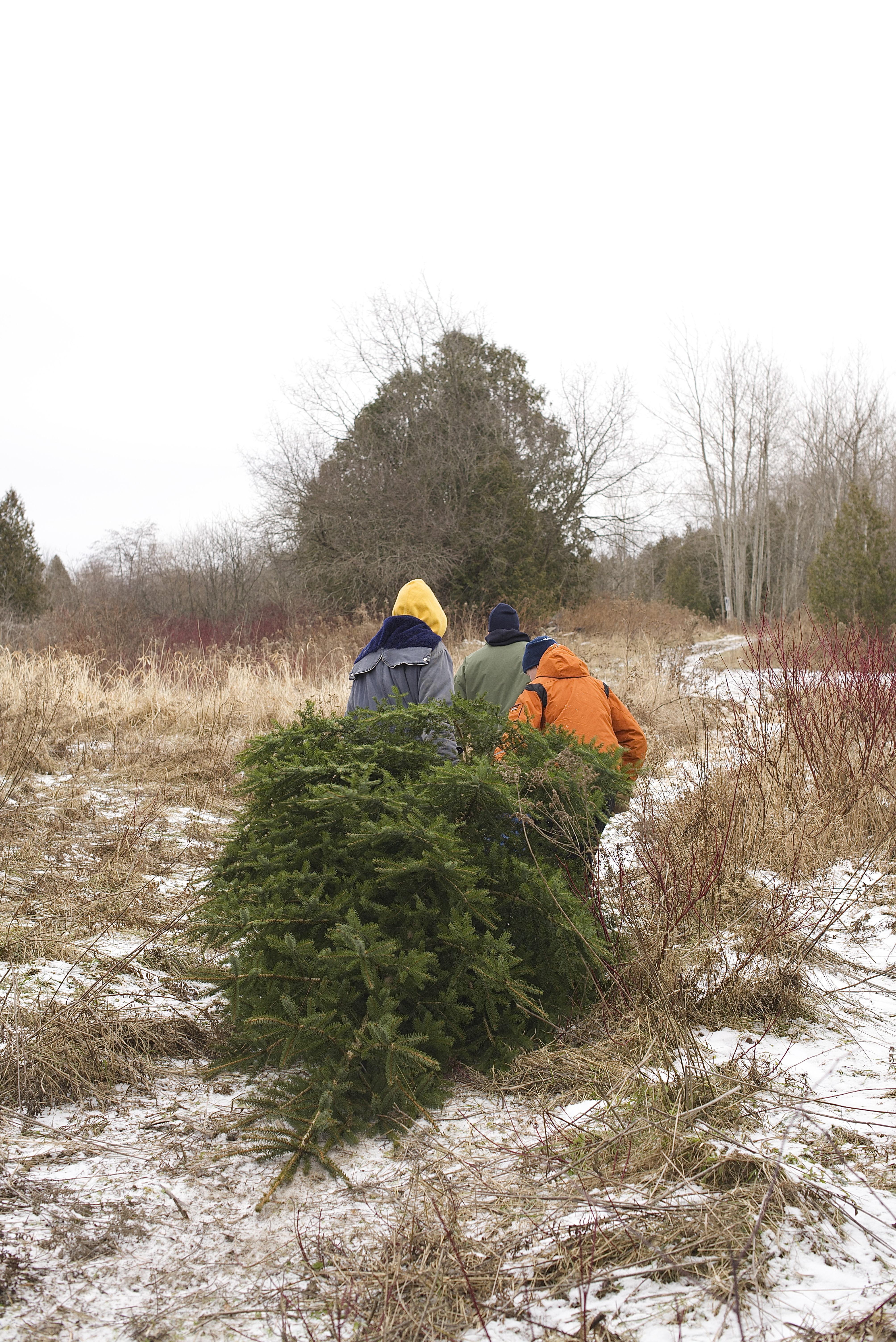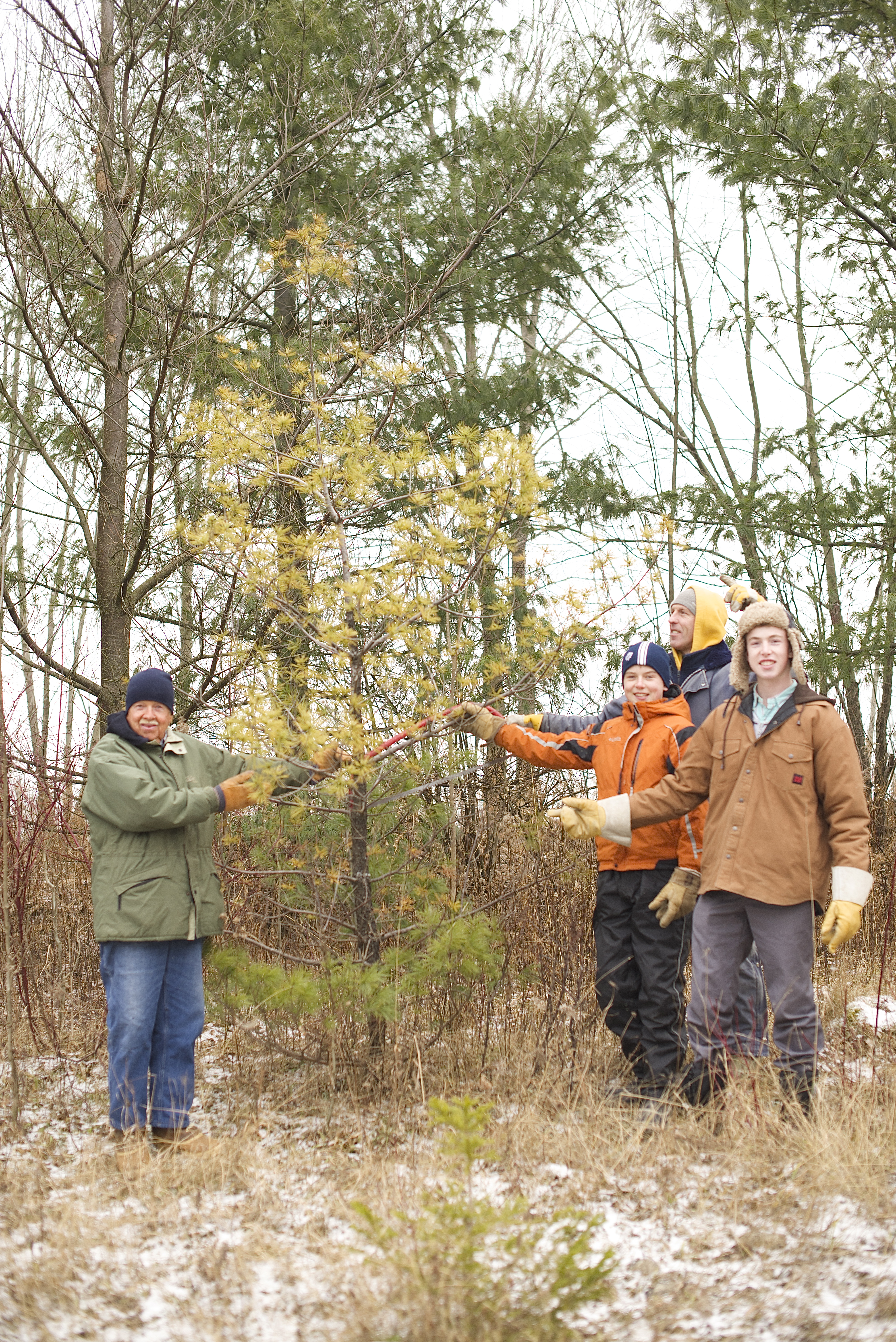 So, I relented. After all, I didn’t want to look greedy. Dad was keen to help us out, and scouted a couple of locations. The problem was, everybody had an opinion about what kind of tree we should have. We struck out with the big truck, and headed back the lane way. After a brief search, the guys decided they found “The One”.