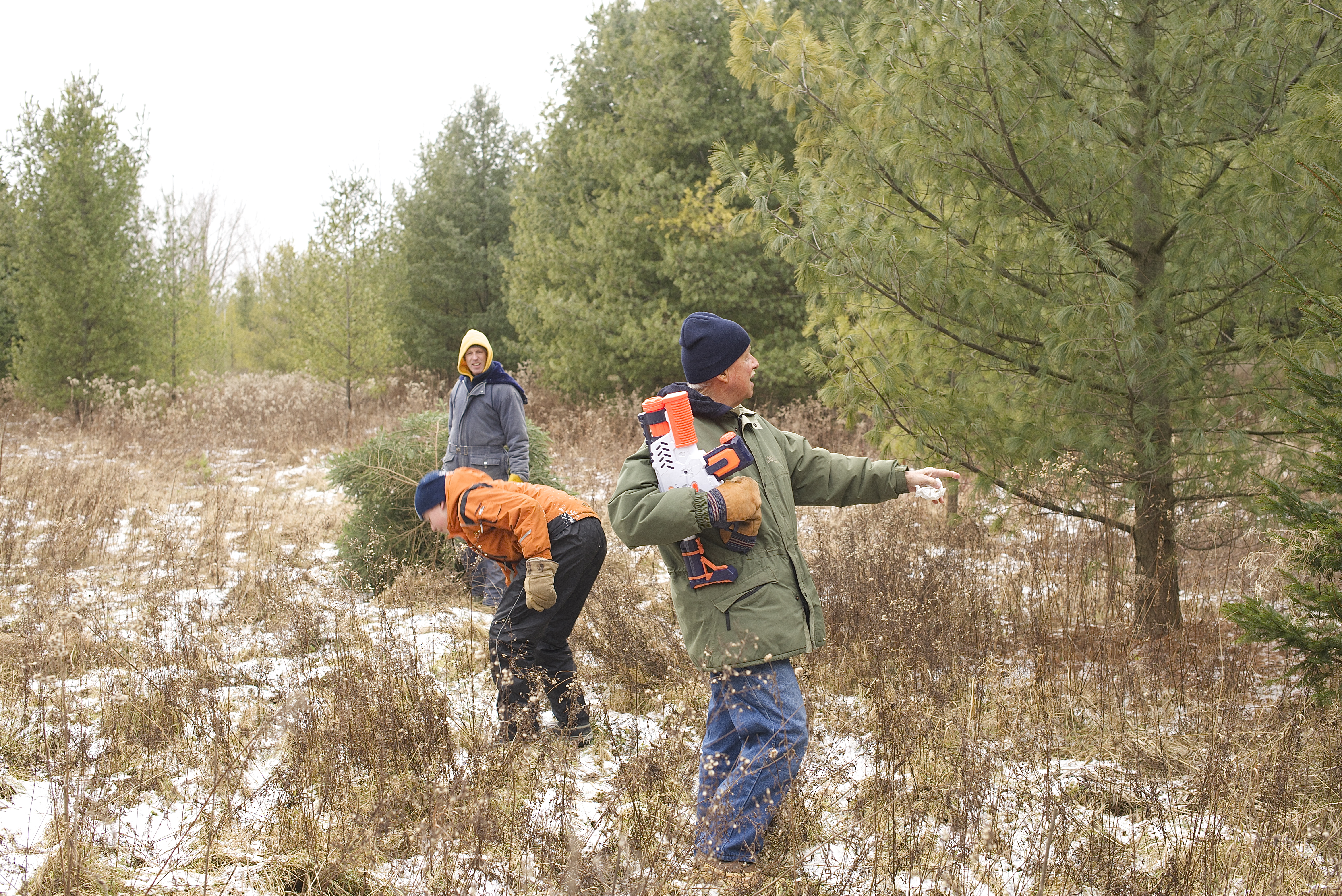 Why, yes, that is a water gun. Why is my father holding a water gun? Because he’s carrying it back to the house for SBS. Why do we have a water gun? Because we are looking for a Christmas tree…Do I have to explain EVERYTHING???