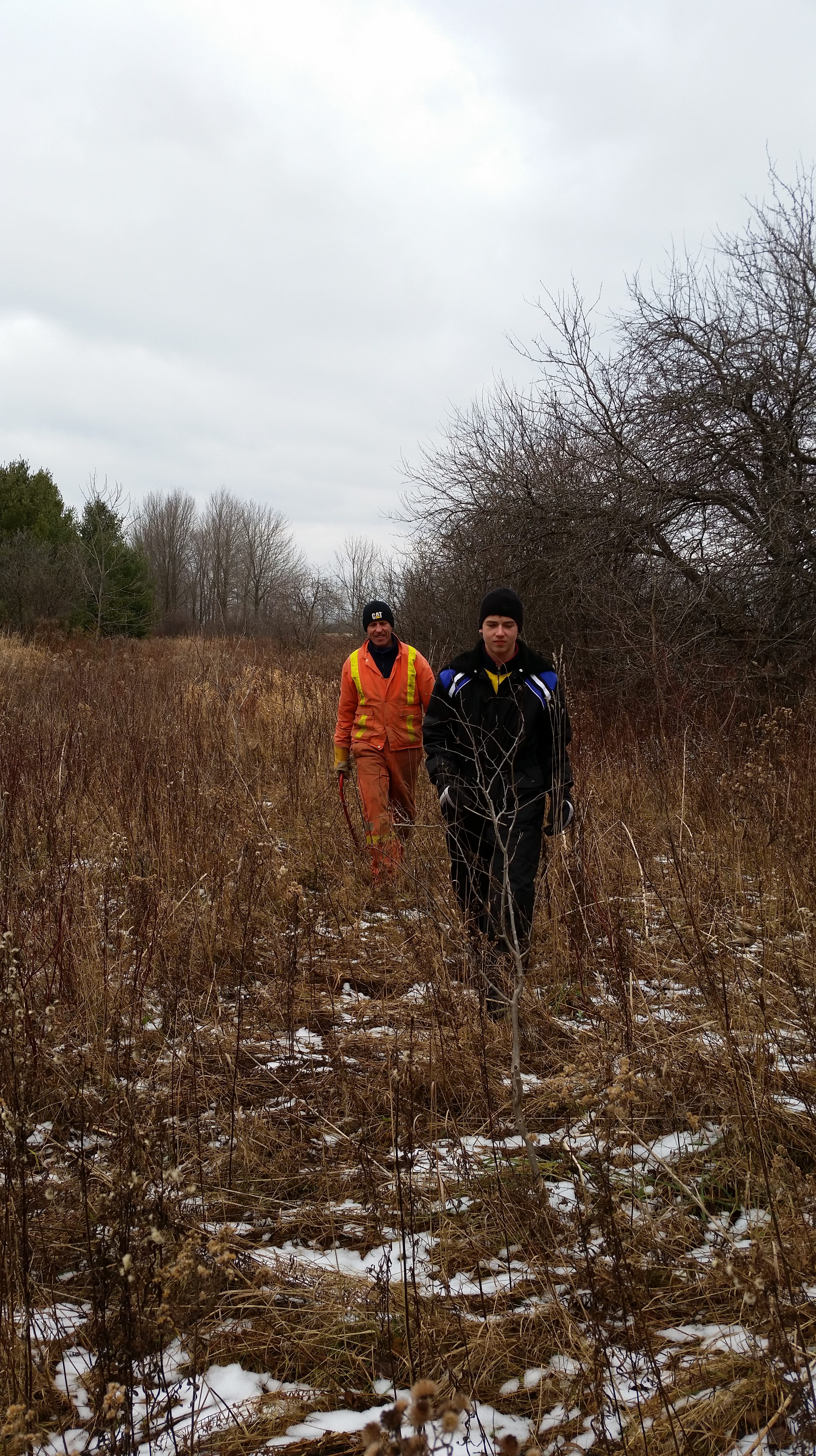 So like the trouper that he is, he agreed to pull the tree out of the bush. But he forgot how far we had walked to get into this little clearing.