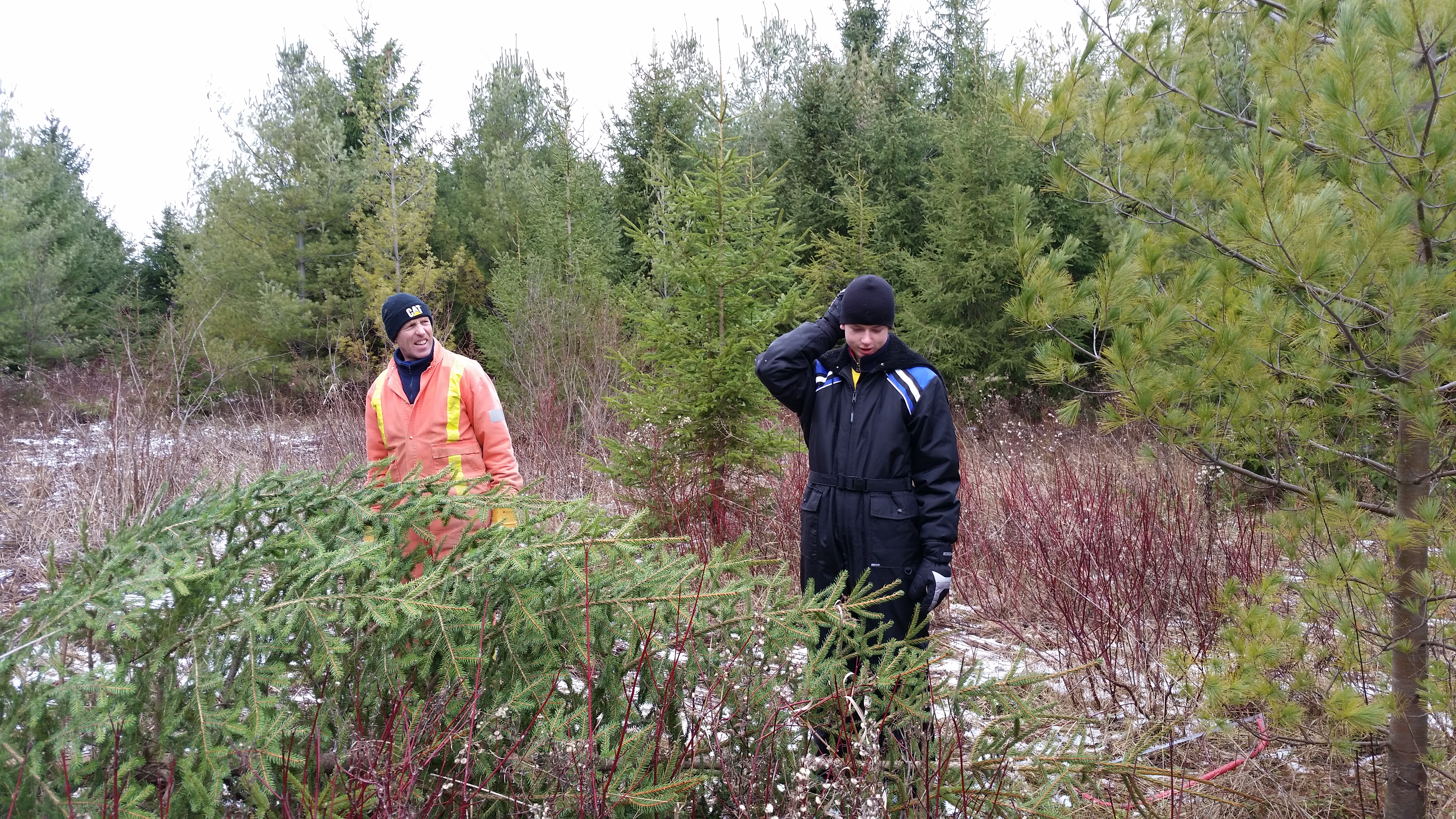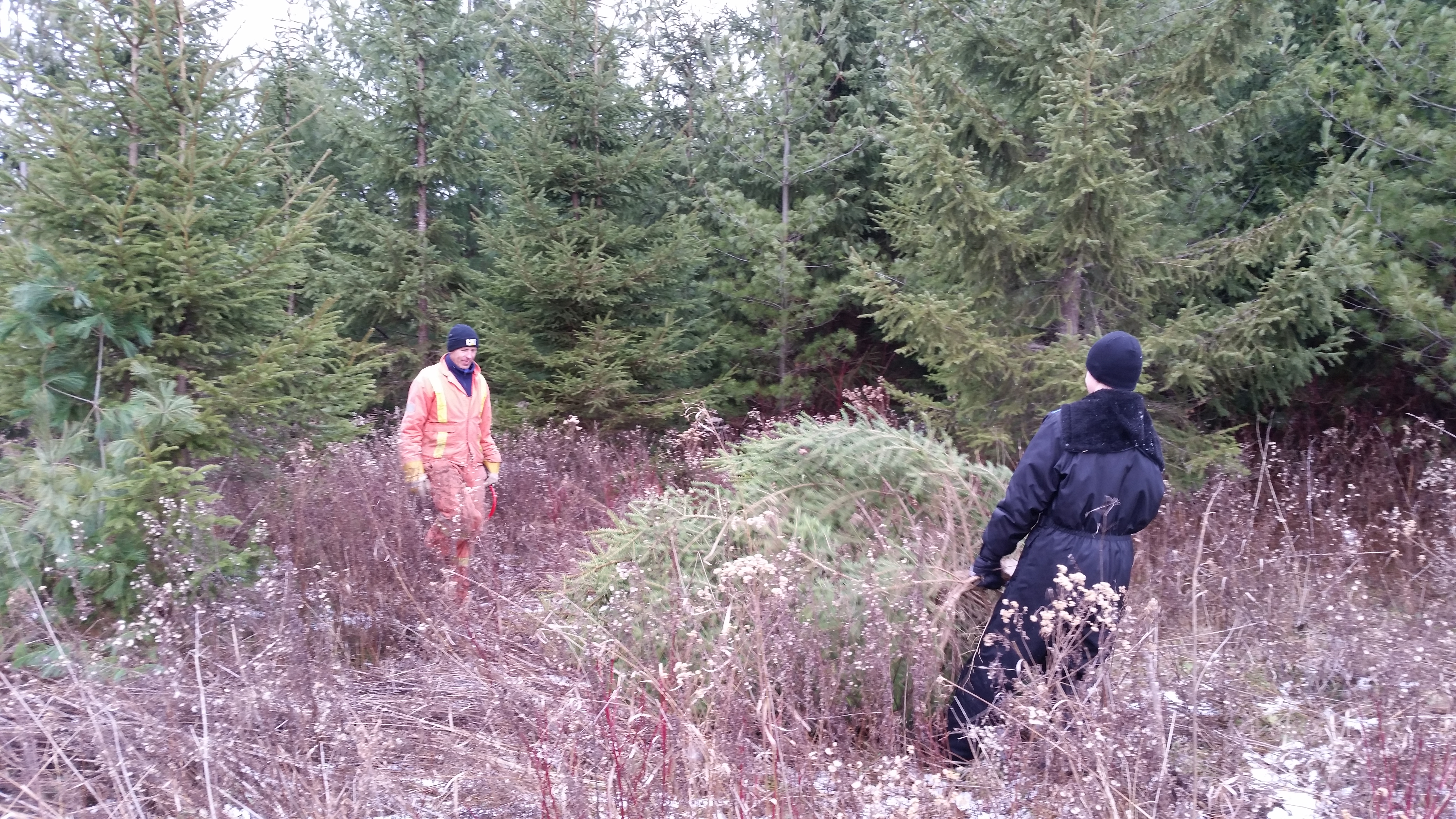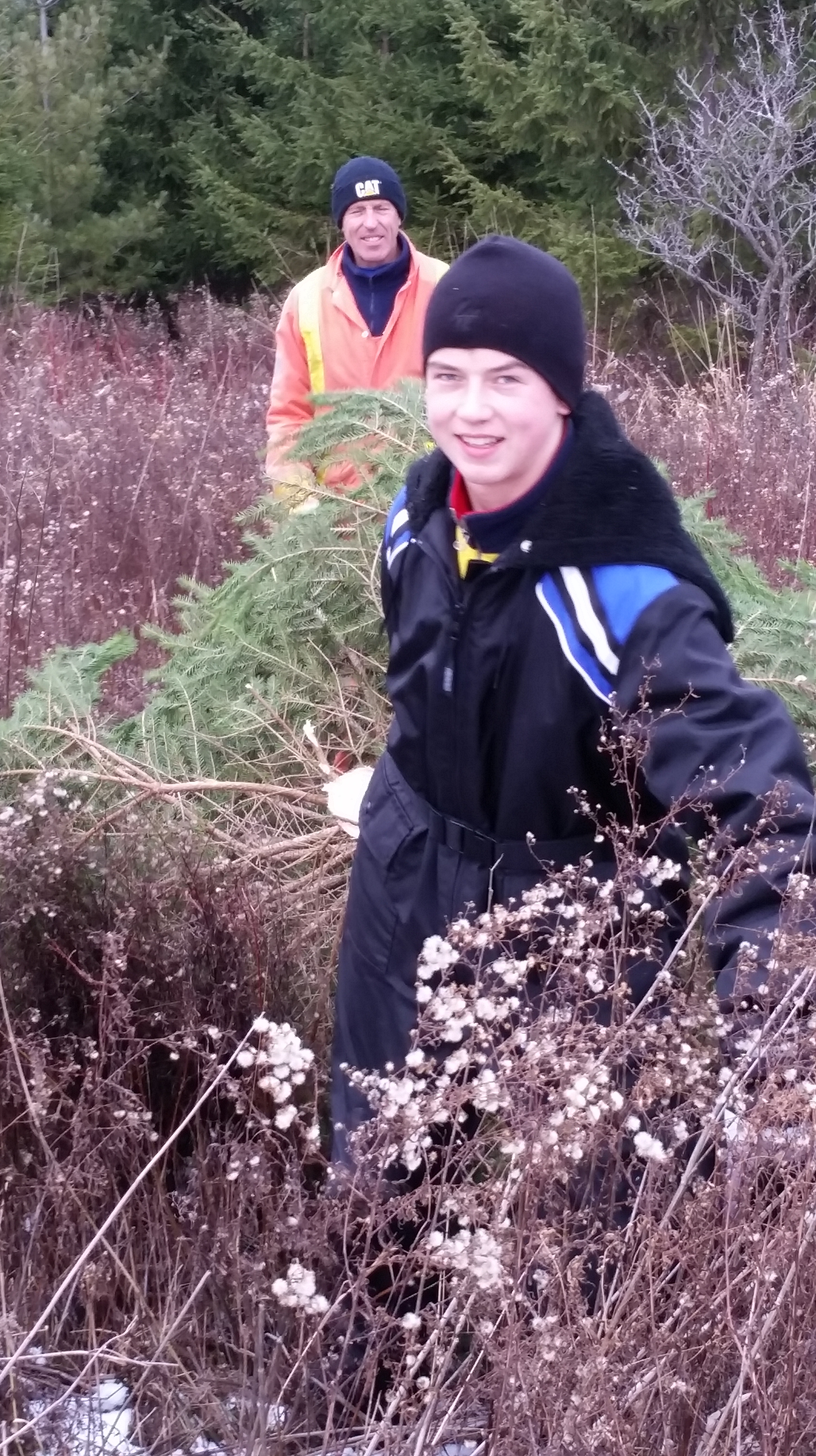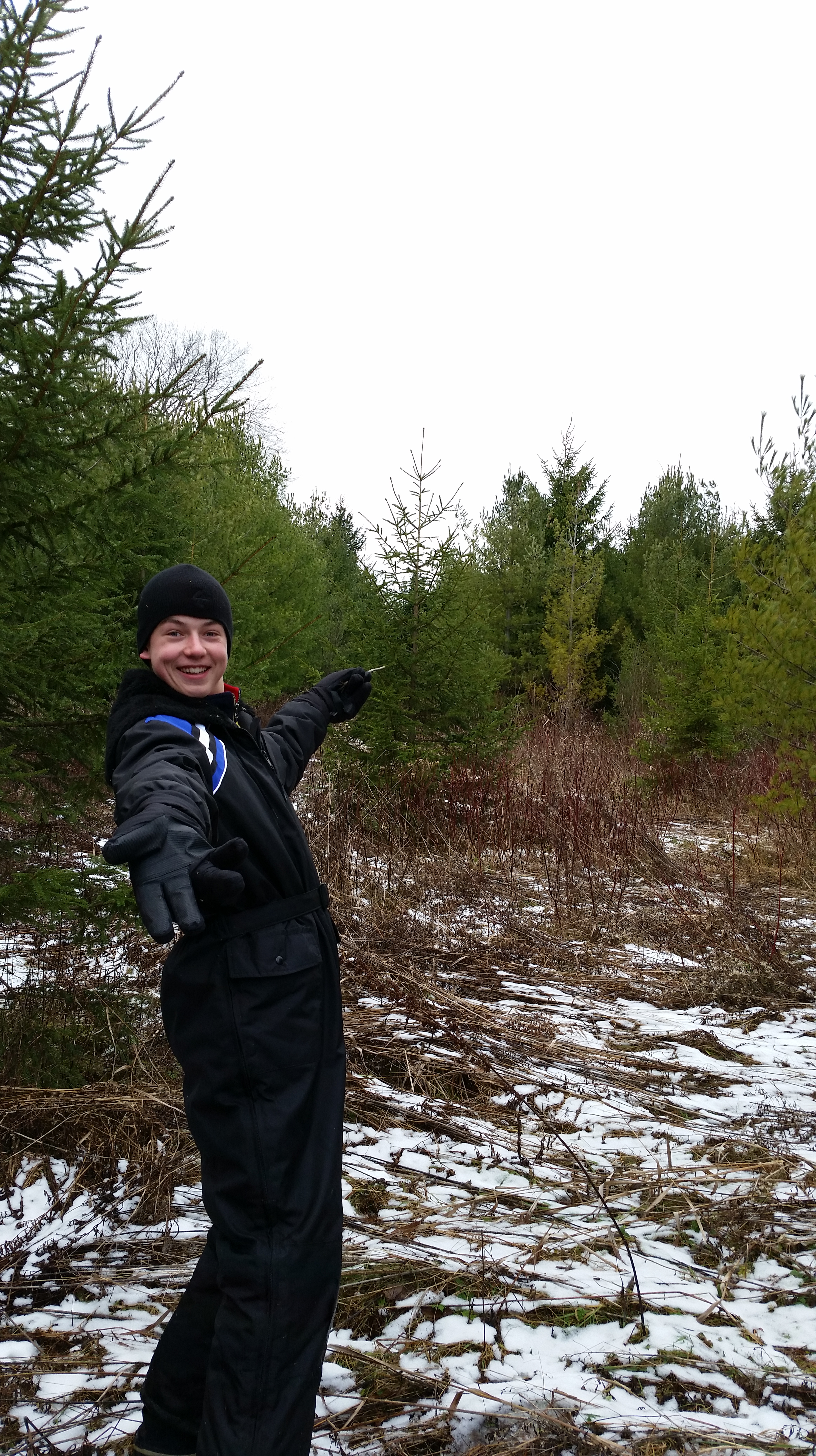We passed the area where we found last year’s tree, certain that there were no suitable specimens from last year. We walked and walked. Eventually SBS was feeling the strain of the trek.