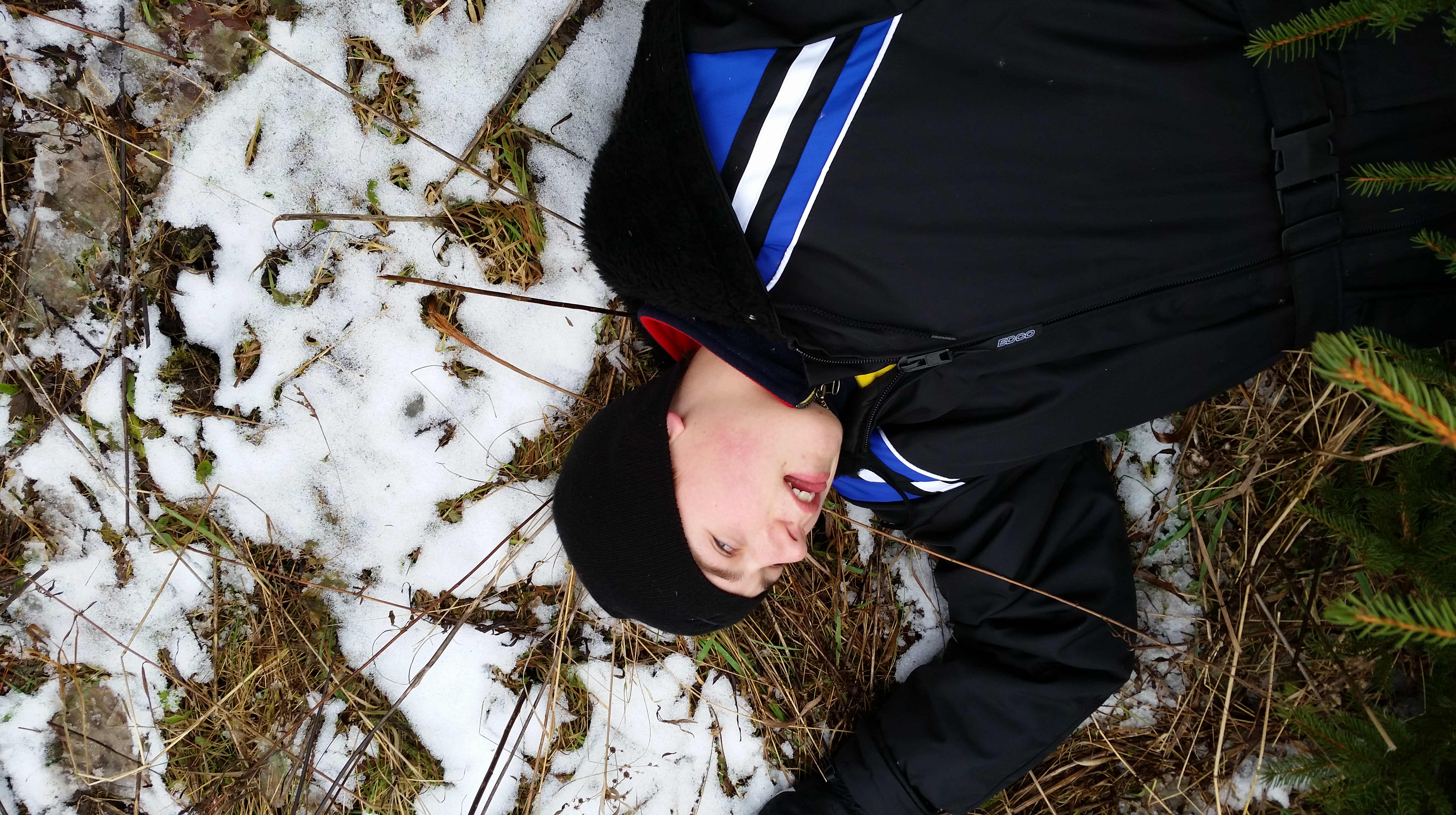 Once we realized there was no long-term damage, we propped him up and told him to drag the tree out of the bush. We’re awesome parents like that.